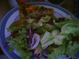 Picamos um ovo e meio cozido num recipiente onde adicionaremos os aspargos, o presunto, os tomates, o pepino, meia colher de salsinha e a cebola.